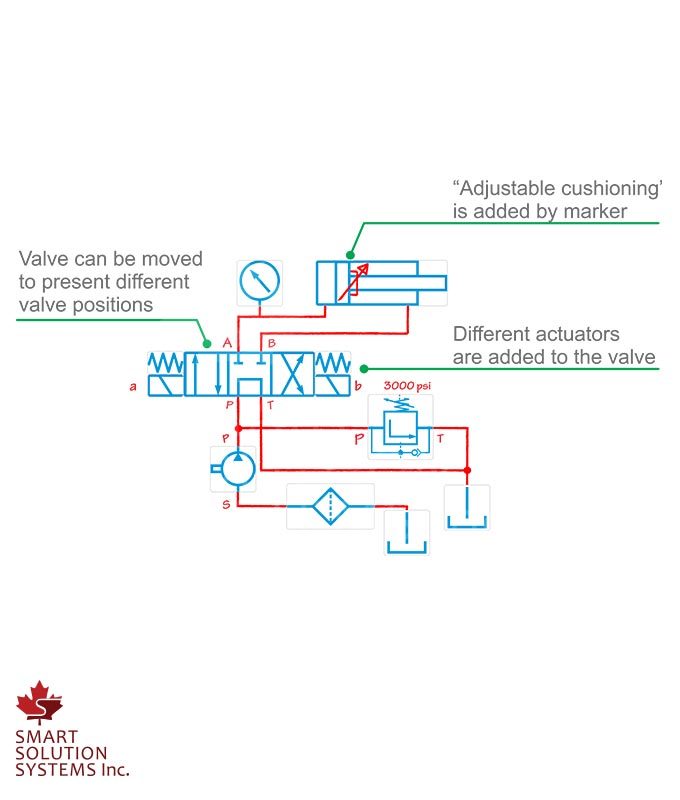 HP-901 includes all pneumatics/hydraulics symbols according to DIN/ISO 1219 standards. This magnetic set provides a quick method of drawing hydraulic circuits on a magnetic white board for the step-by-step development of circuit diagrams.